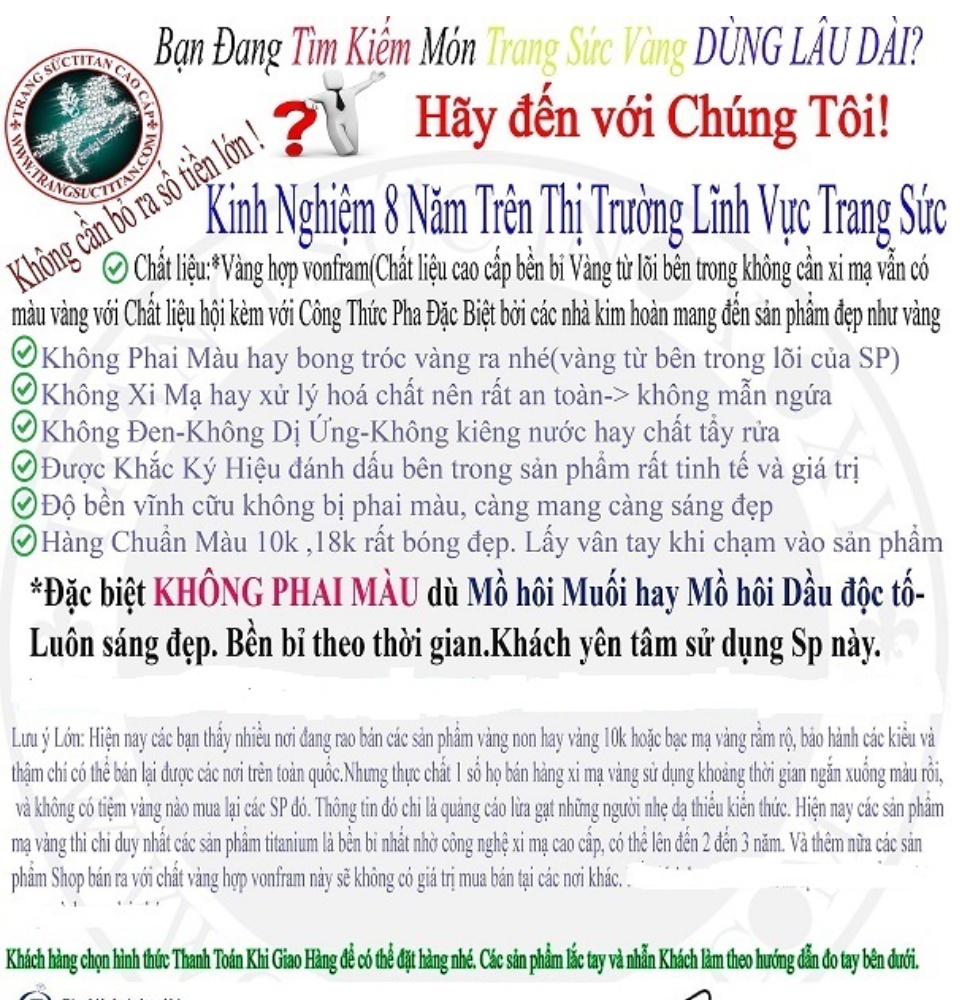 *.★Không Phai Màu hay bong tróc vàng ra nhé(vàng từ bên trong lõi của SP)