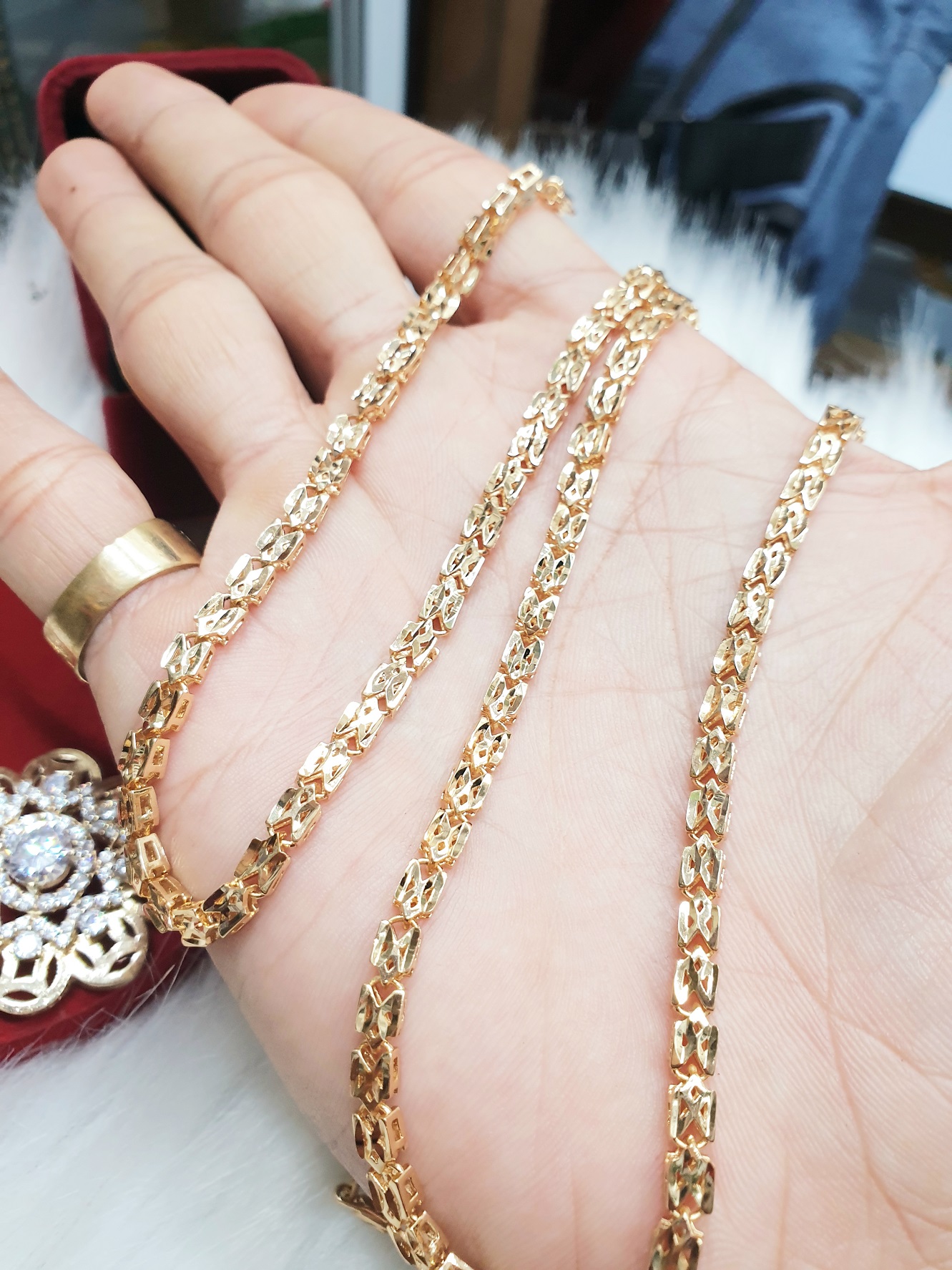 Tìm ngay bên mình nhé.Sản phẩm không phai màu khi dùng. Mang như vàng tây 18 nhé.